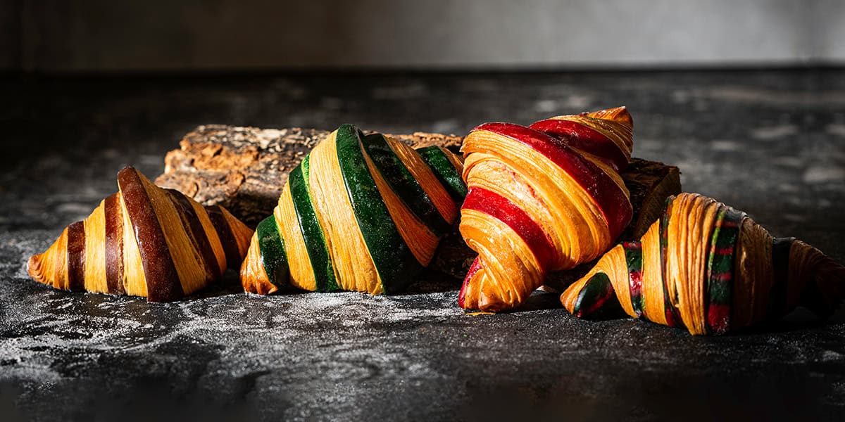 Farine de blé non blanchie, beurre, sucre, levure, sel, crème maison à la pistache et au dulce de leche.