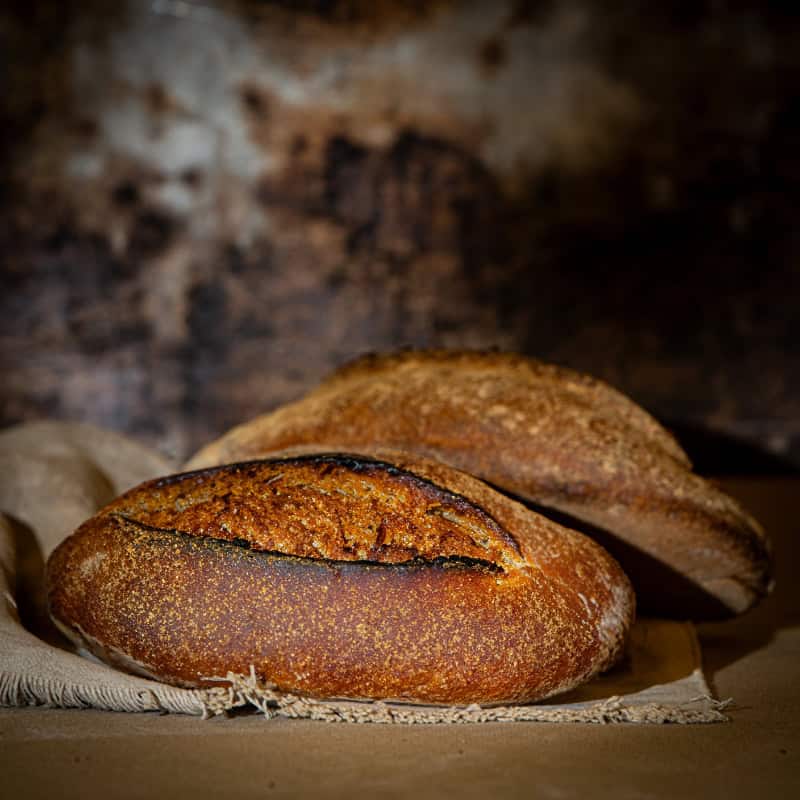 75% Farine d’épeautre bio, 25% Farine de seigle, levain, levure, eau, sel. GRAINES DE CITROUILLE.