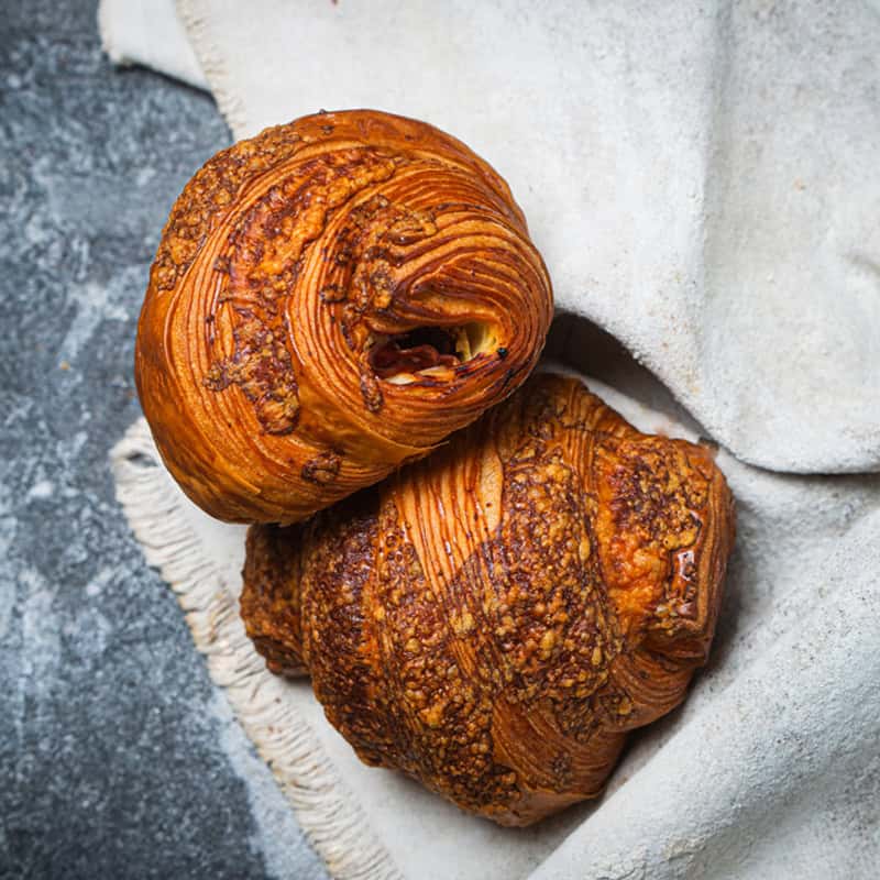 Farine de blé, sel, sucre, lait, beurre, œufs, pâte à tartiner à la pistache et pistache.