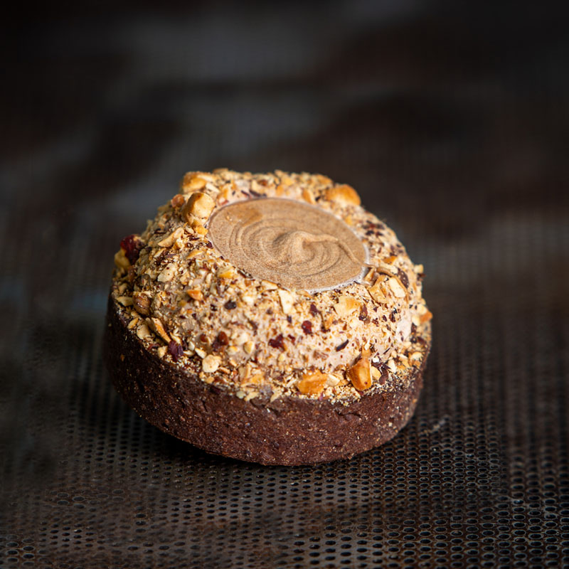 Sandwich végé Pain frais du jour, laitue, tomate, concombre, galette de légumes épicée aux haricots noirs, huile d’olive, pesto.